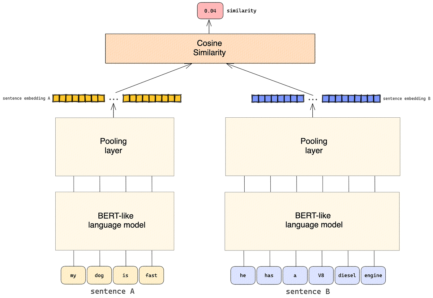 Sentence Transformer 모델 중 output이 일정한 차원의 벡터로 출력하는 Bi Encoder 모델을 사용하게 된다.