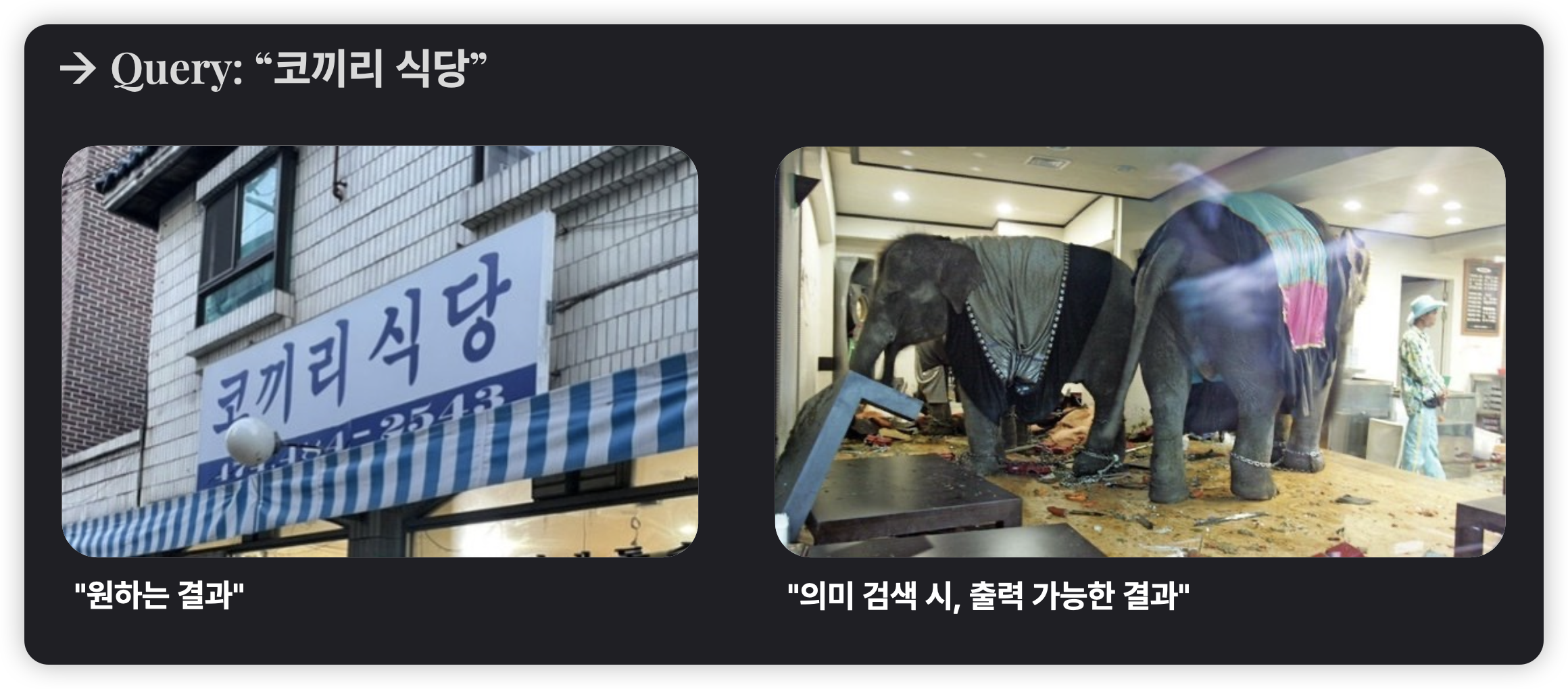 원했던 것은 "코끼리 식당"이라는 고유한 가게에 대한 결과를 원했지만, "코끼리가 있는 가게"라는 잘못된 검색 결과를 나오게 할 수 있다.