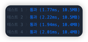 프로그래머스를 기준으로 좌측이 실행시간, 우측이 메모리 사용량을 의미해요.
