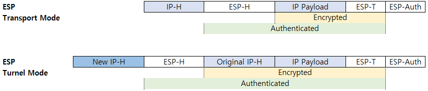 ESP 역시 Transport 모드와 Tunnel 모드를 지원
