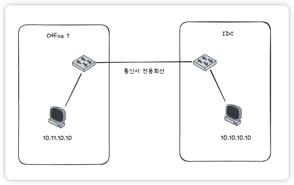 만약 새로운 sites(Office, IDC 등)에서 동일한 사설 네트워크를 사용하려면 다음과 같은 방법이 있음
