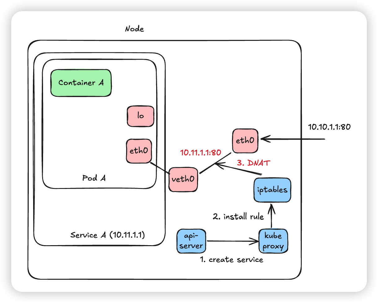 → kube-proxy (DNAT)